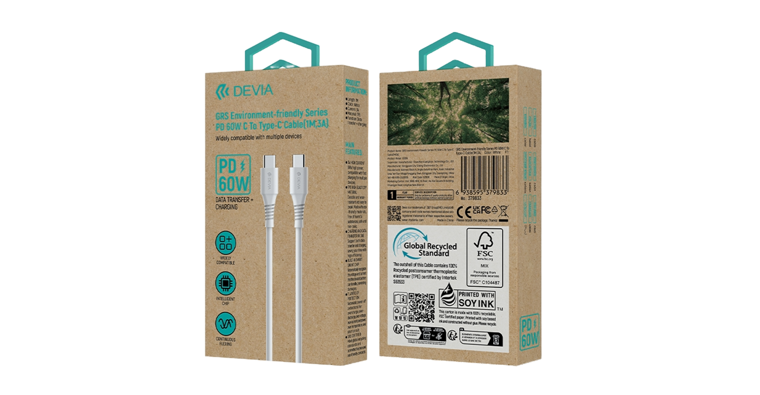 Devia EC636 GRS Series C To Type C PD 60W Cable (3A,1M)