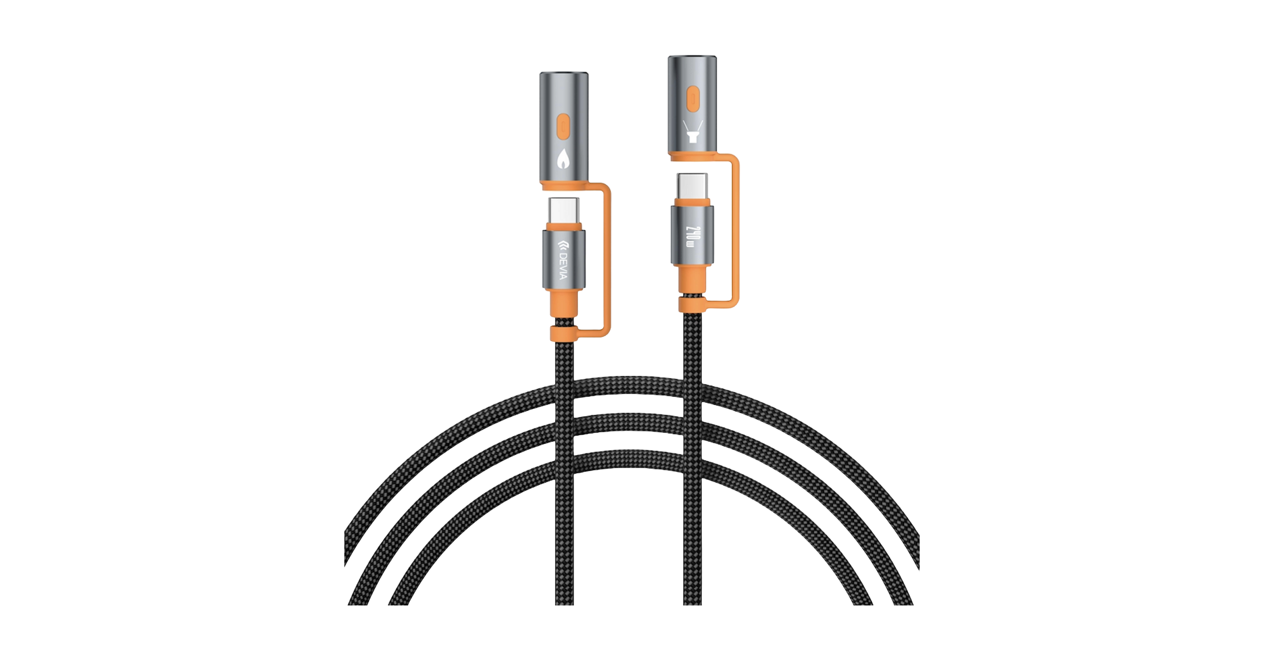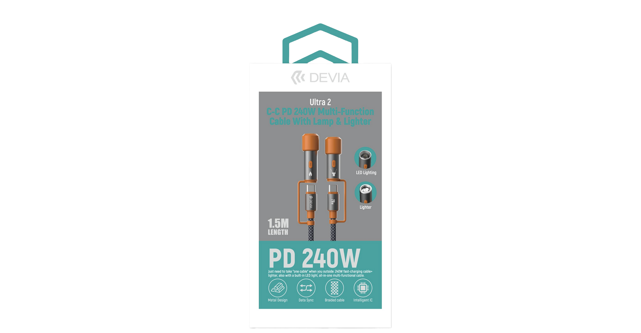 Devia Ultra2 C-C Pd240w Multi-function Cable With Lamp & Lighter(1.5m )-EC660 -Black| 6942297129627